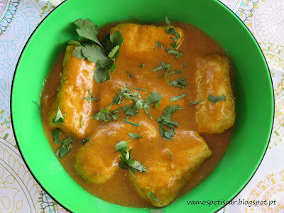 Adicionar o caril de manga e deixar cozinhar durante 15 a 20 minutos em lume médio-baixo.