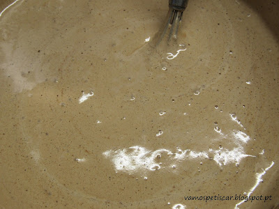 Adicionar aos poucos a água e a mistura anterior à mistura dos ovos com o açúcar.