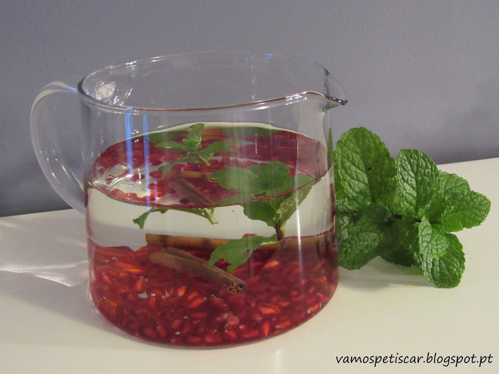 Receita Água de Frutos Vermelhos com Pêssego, Lima e Hortelã