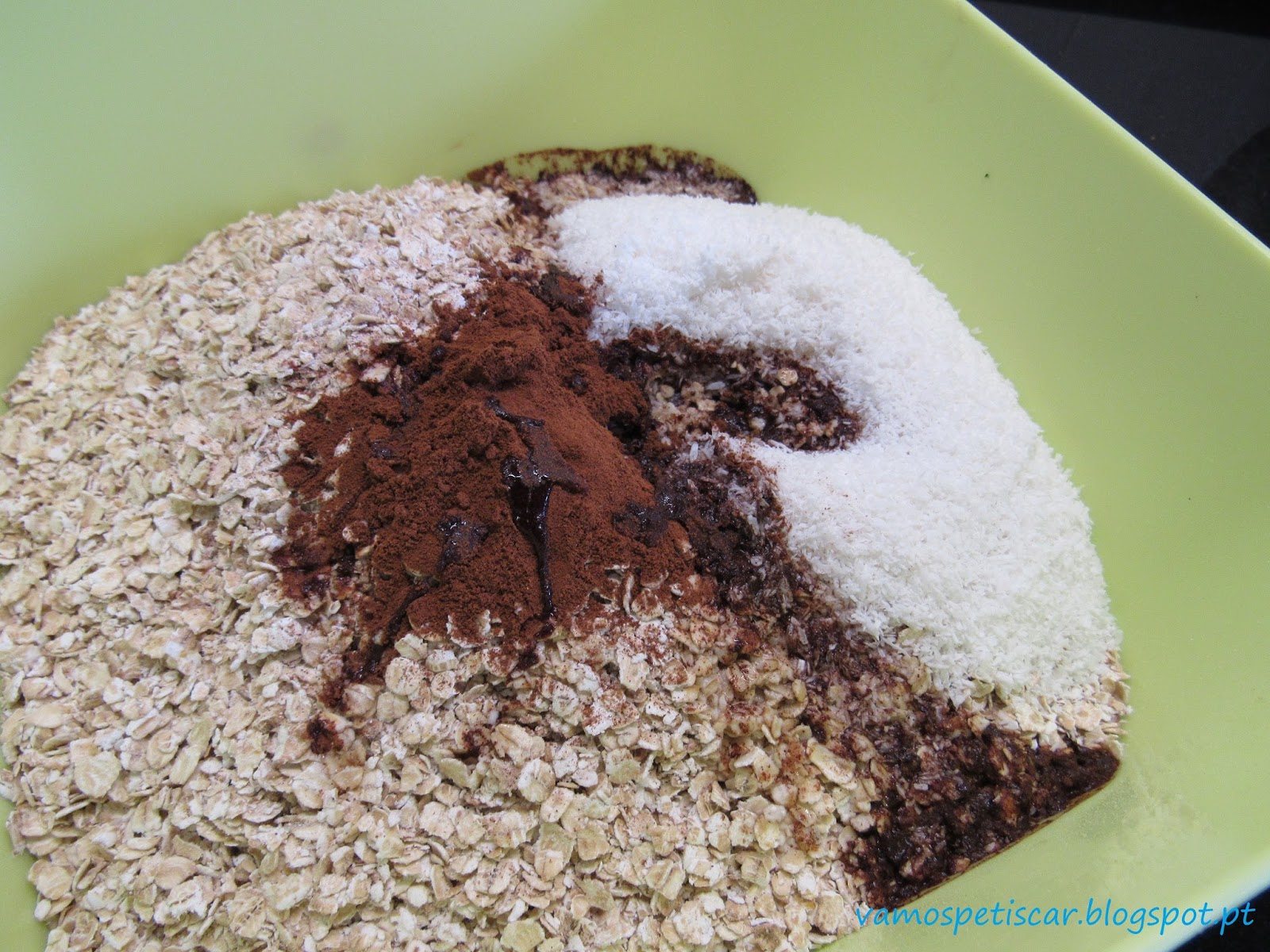 Acrescentar o amido de milho e o fermento em pó, envolver até obter uma massa homogénea.