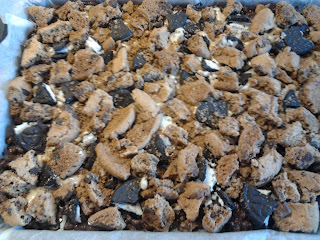 Deitar pedaços de massa entrecalados na forma.