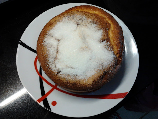 Retirar o bolo da frigideira e deixar arrefecer um pouco antes de servir.